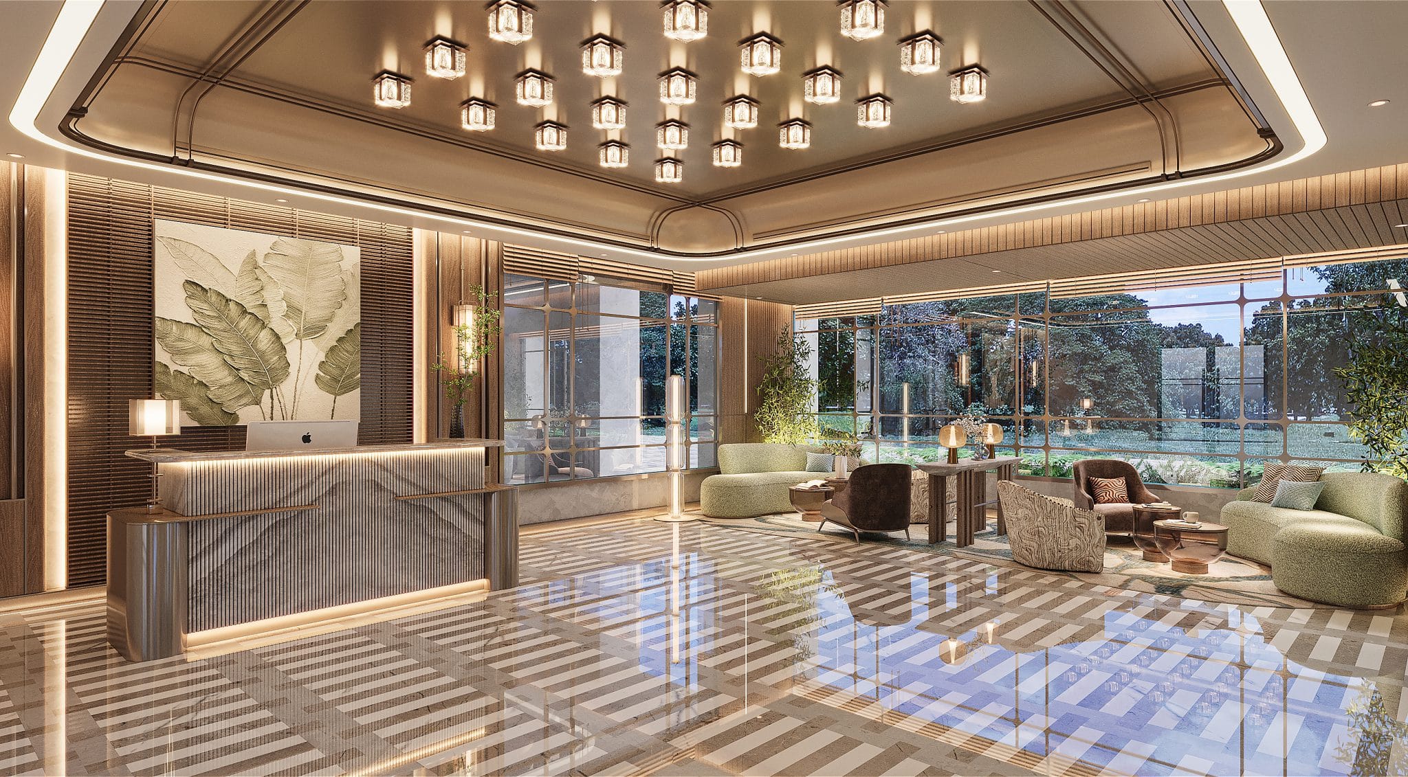 Branded residences with massive resort-style clubhouse and twelve grand residential lobbies.