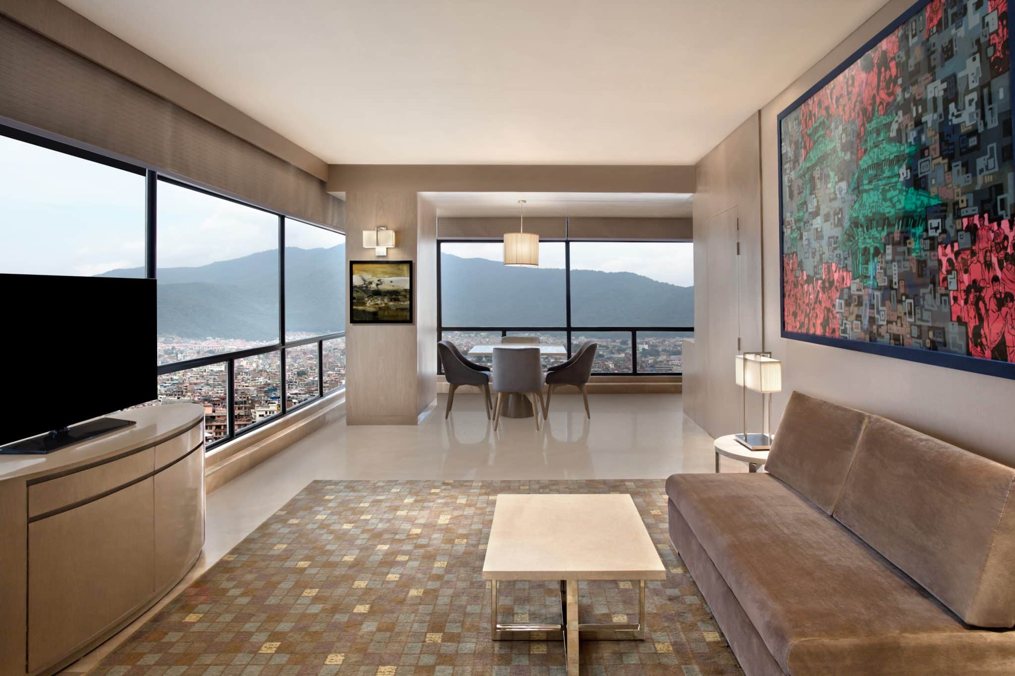 The all-day dining space features vibrant flooring and several interactive kitchens, adhering to the overall aesthetic. The crowning glory is the roof-top, which incorporates a heated pool, a pool bar, a lounge bar, and a striking 360-degree view of the city and, on clear days, the distant Himalayas. This floor is often the scene of vibrant, pulsating events. The compact, well-appointed guest rooms weave brand-prescribed features with Nepalese-inspired art, successfully combining contemporary design strengths with unique vernacular charm.