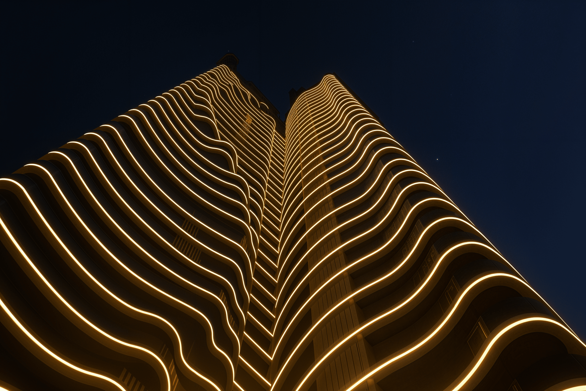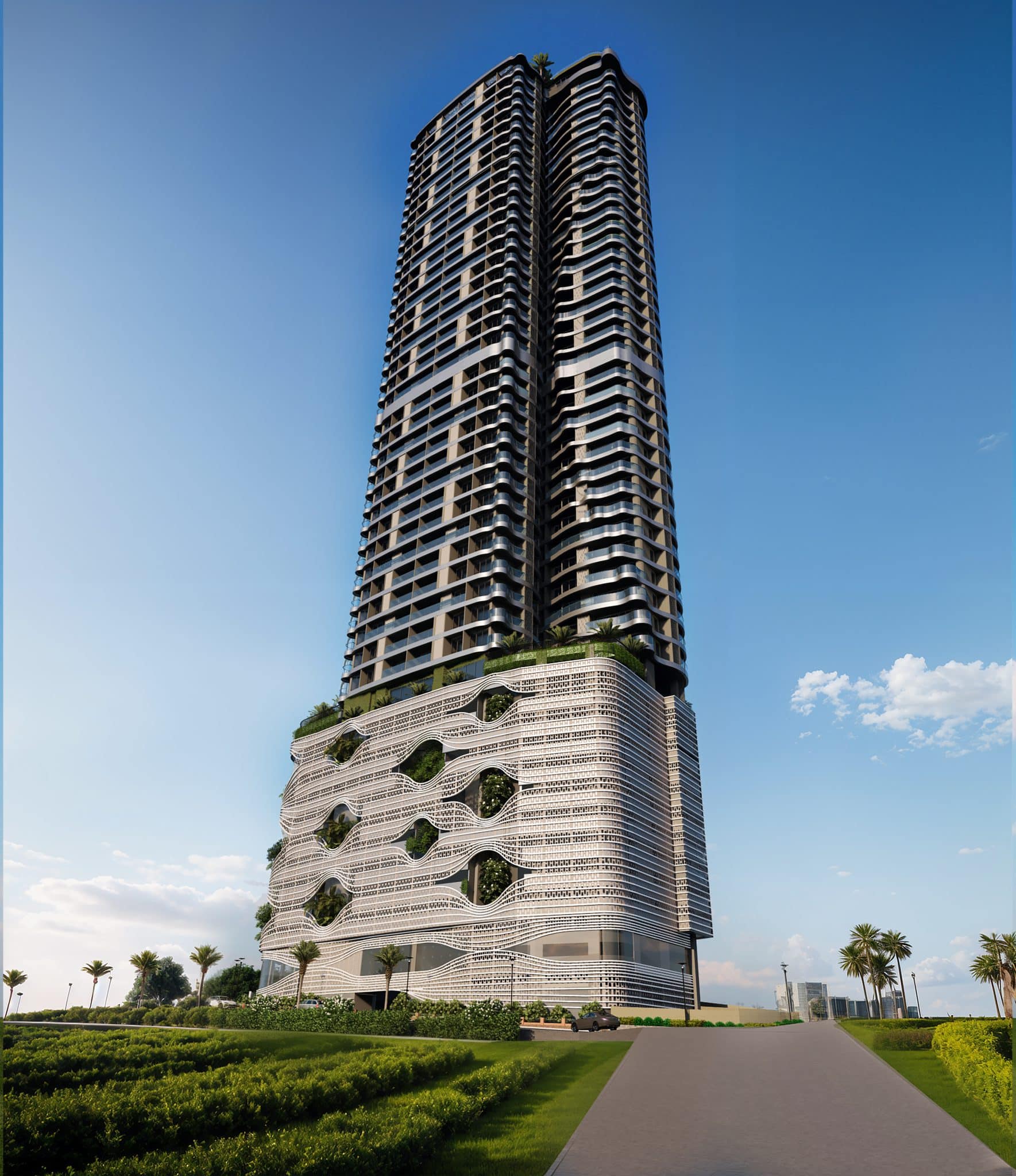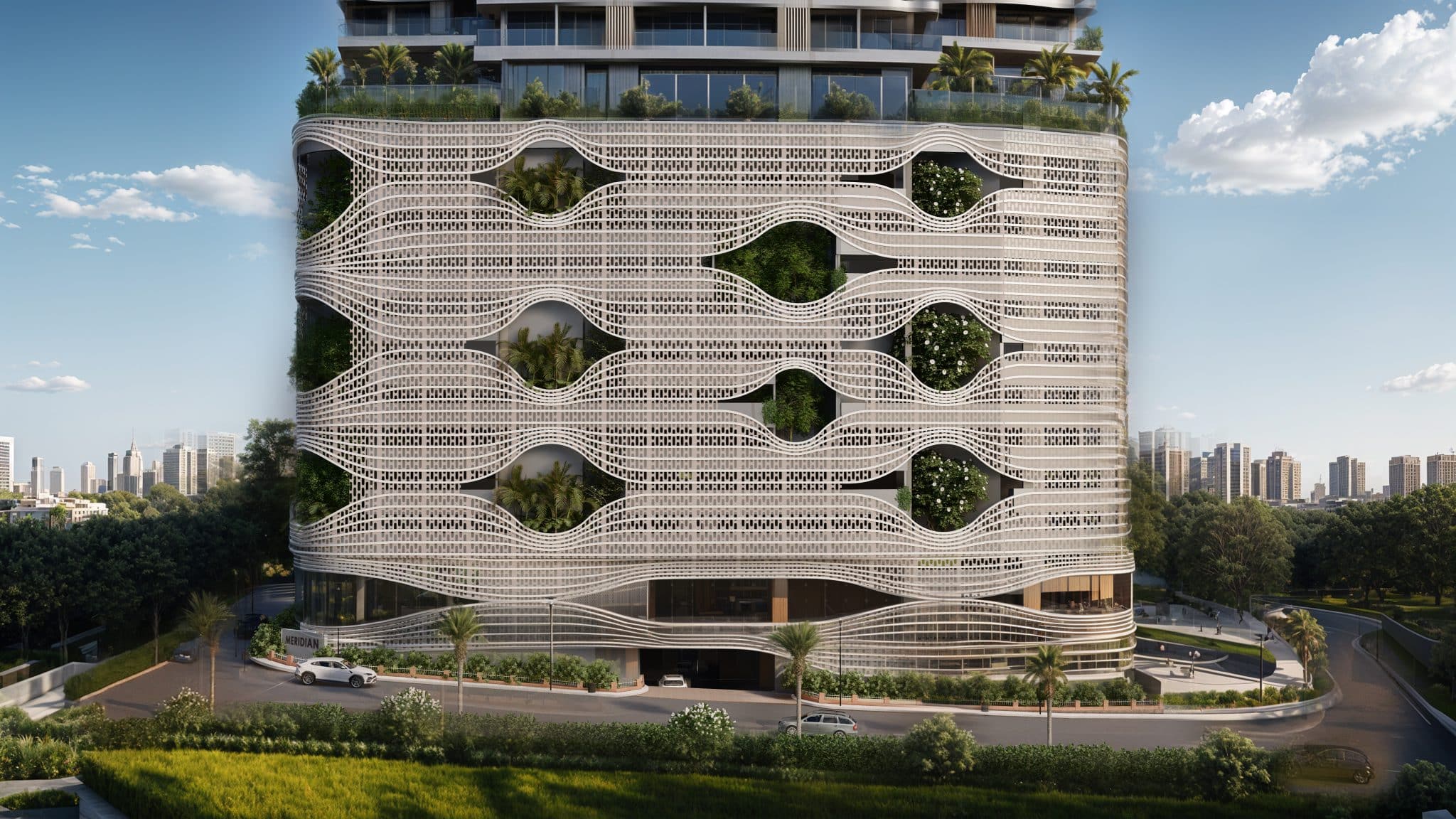 This striking 50-storey residential tower in Goregaon features 300 ultra-modern apartments with cutting-edge parametric architecture. Bobby Mukherrji Architects designed the tower to enable seamless urban living, with each floor housing four exclusive residences. A massive seven-level podium provides ample parking and hosts a wide array of club facilities .