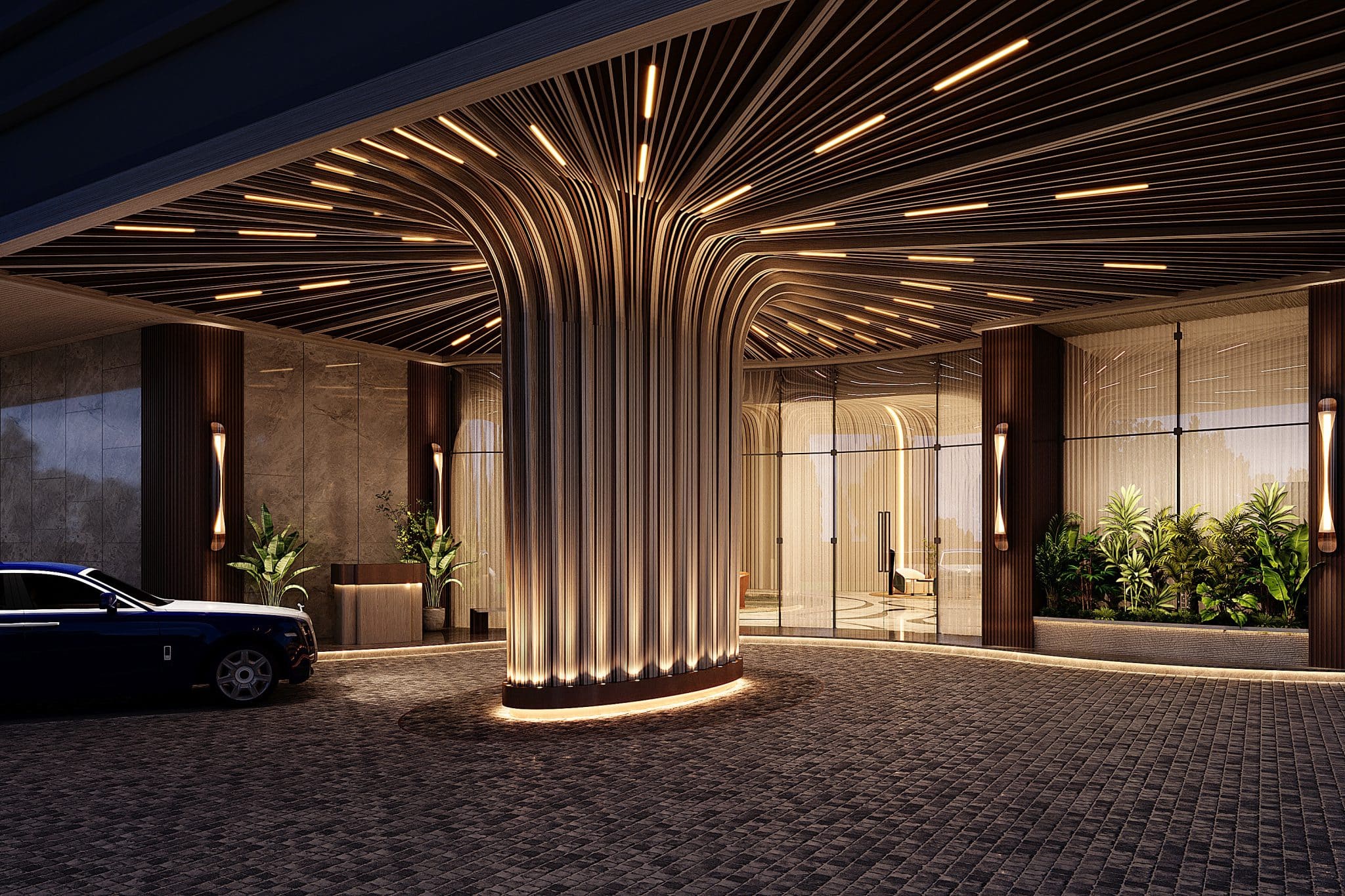 A grand reception lobby establishes the initial tone for luxury, which is further enhanced by a rooftop pool and clubhouse that offer stunning, panoramic city views. The distinctive architectural form and futuristic design of this Goregaon high-rise fundamentally transforms the definition of tall residential building standards in Mumbai. The podium integrates comprehensive amenities, offering residents a complete lifestyle package, ensuring this ultra-modern condominium sets a high benchmark for luxury residential design in the metropolis.