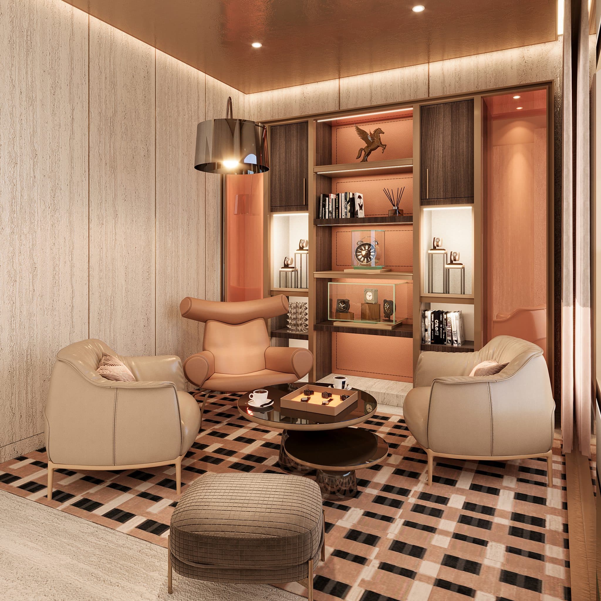 From its striking exterior façade that glows with presence both by day and night, to its thoughtfully planned interiors, every corner is crafted to highlight the uniqueness of the collections on display. The ground floor unfolds as a seamless retail gallery with carefully zoned layouts, while the first floor transforms into an intimate consultation hub, offering bespoke experiences in private, luxuriously appointed settings. Dedicated consultation rooms and elegant washrooms complete the holistic visitor journey.