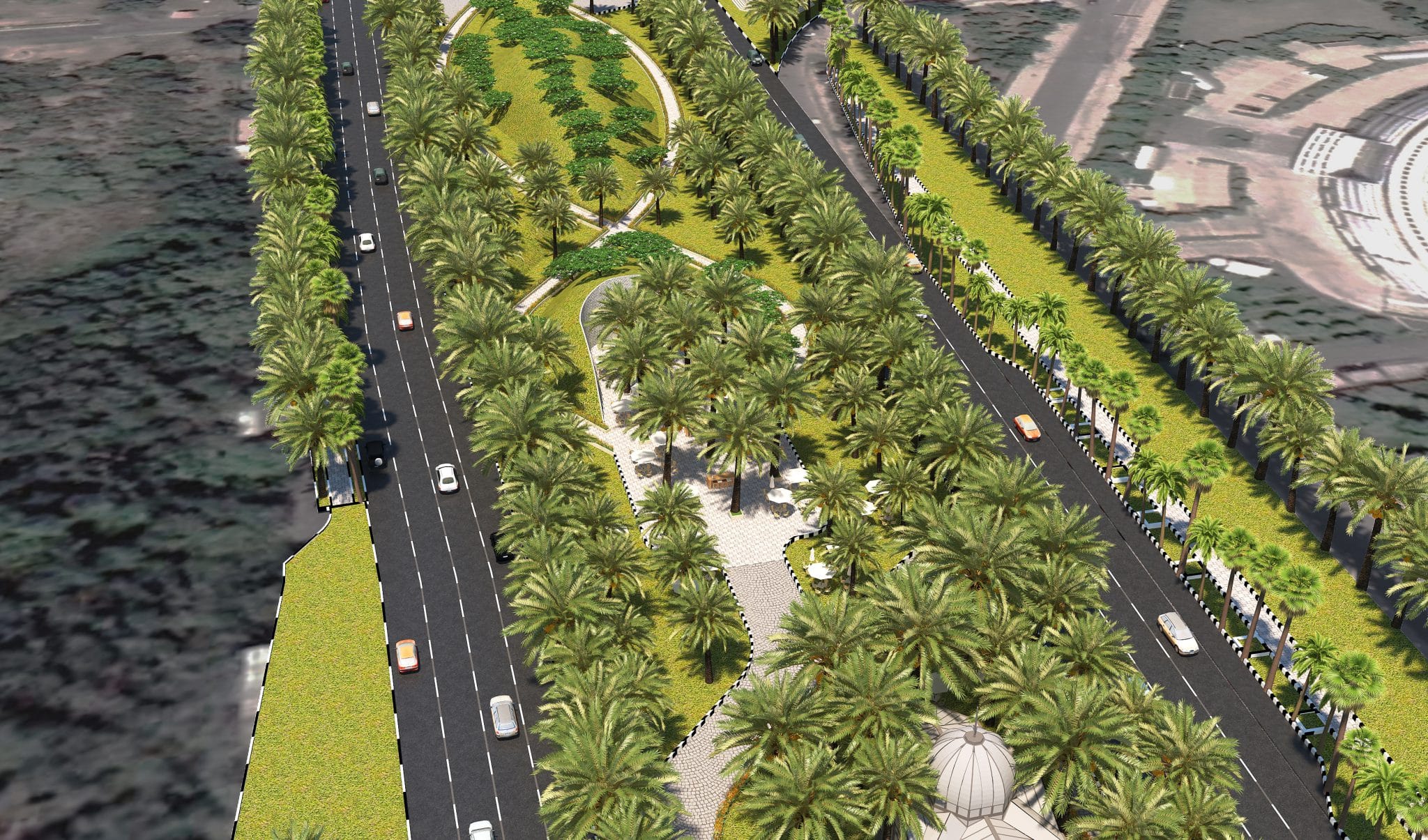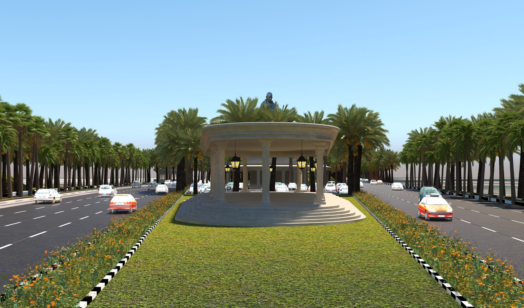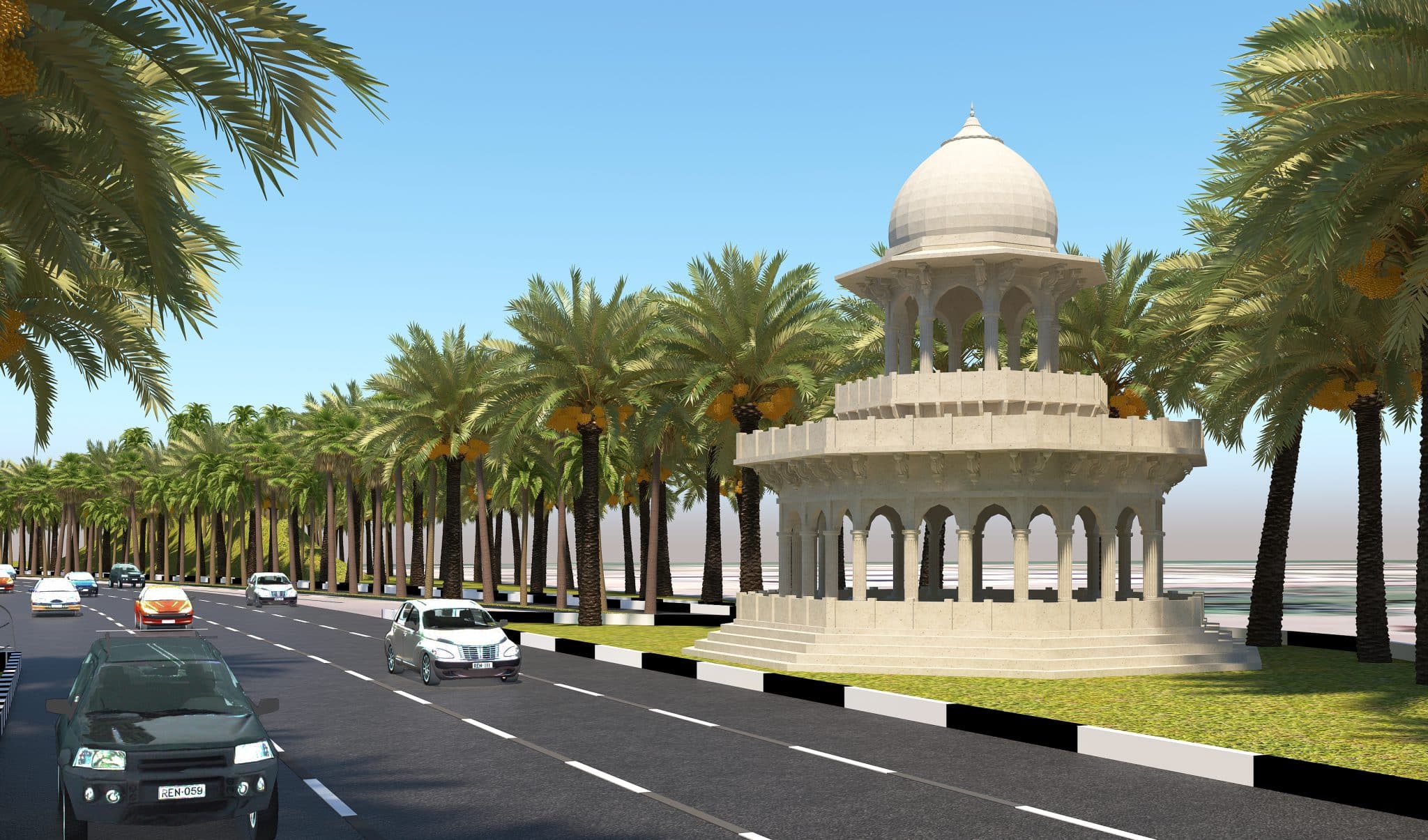 The initial phase, stretching a few kilometers long, served as a prototype. The road's median was identified as a key area for refurbishment. Native Babul trees that flourished there were retained and paired with flowering plants, lawns, and large palms. The latter were strategically illuminated to add drama to the continuous vista. Similar plantation along the sides of the roads softened their edges, while new sidewalks and bicycle tracks enhanced safety and pleasure for walking and cycling. A bridge that formed a part of this stretch was also designed and decorated.