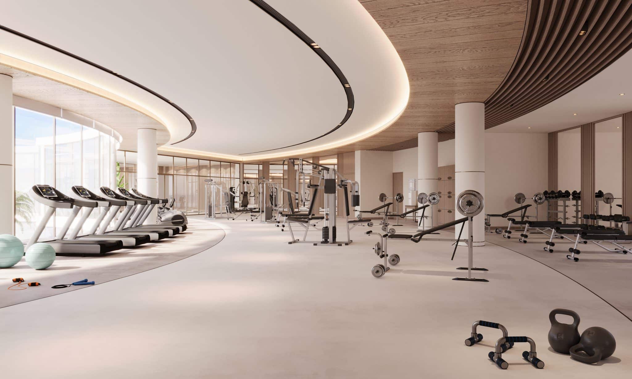 This is a 45,000-sq-ft modern, international-class membership-only club, part of the Palm Olympia real estate development and one of its stellar attractions. The built-form is circular with a swimming pool occupying a central, open-to-sky courtyard.