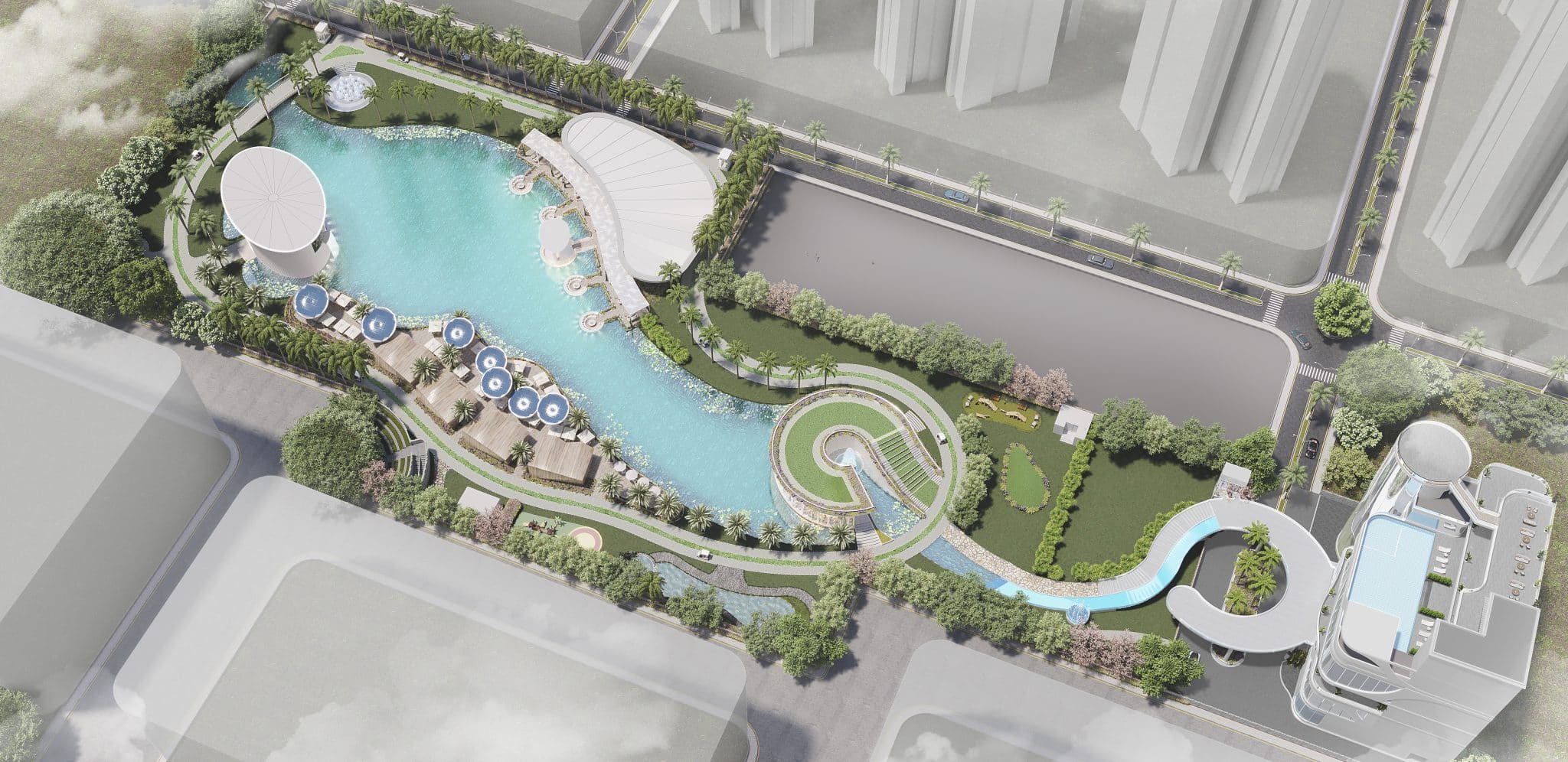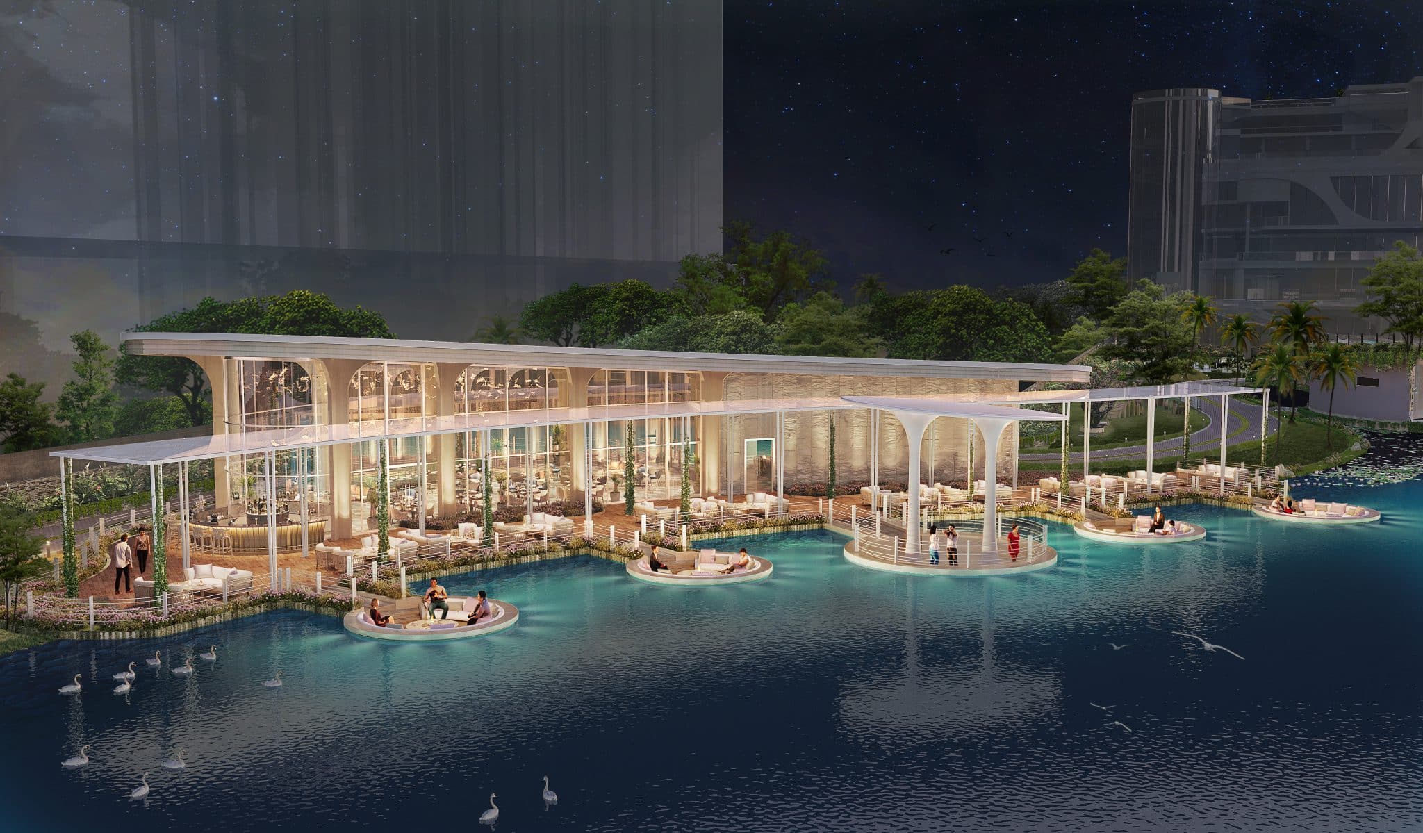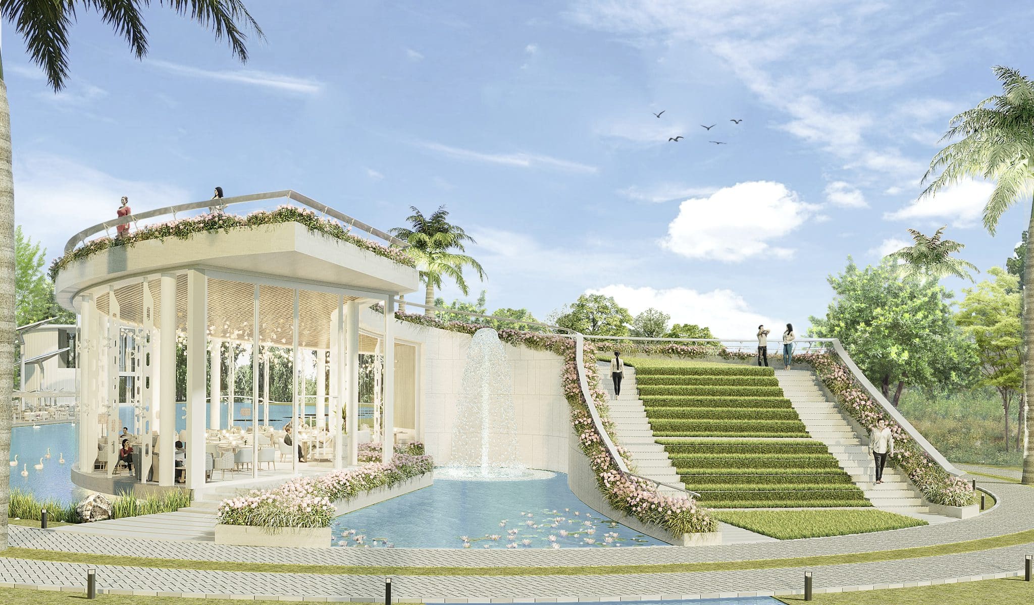 Raheja District's Central Park is a vibrant 5-acre recreational hub designed as the heart of an 80-acre mixed-use development. Anchored by a 1.5-acre central lake, the space features four uniquely designed restaurant buildings along its banks, surrounded by walkways, jogging tracks and children's parks. Conceived as a social and cultural destination, it includes an amphitheater, petting zoos, a dog park, a turtle pond, a koi fish pond, dancing fountains and swans gliding across the water. With a banqueting lawn and immersive public spaces, this dynamic environment is set to become a key attraction, fostering community engagement and urban leisure.