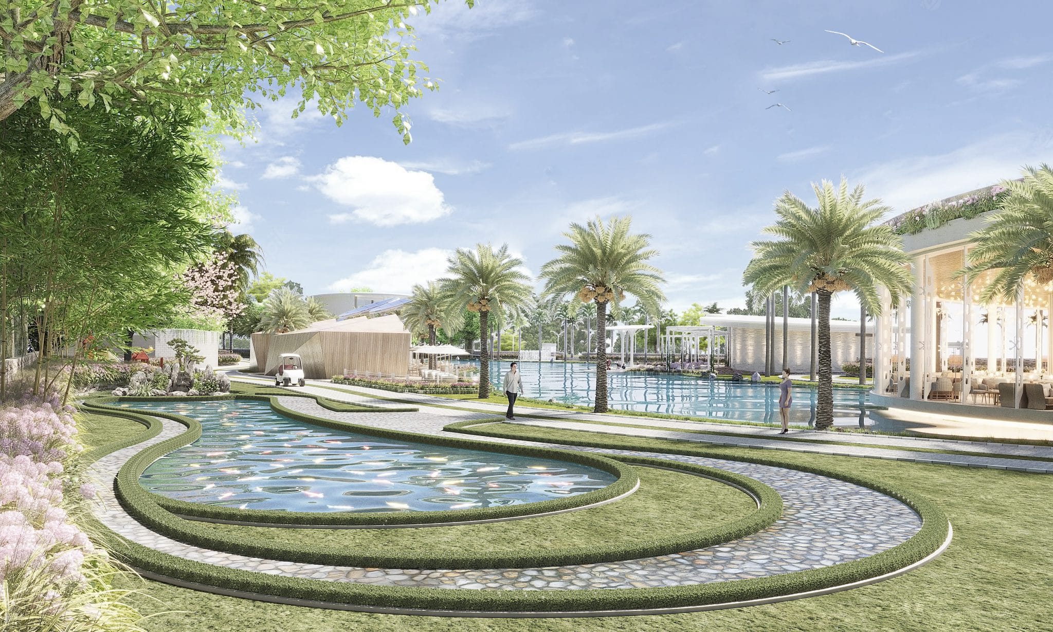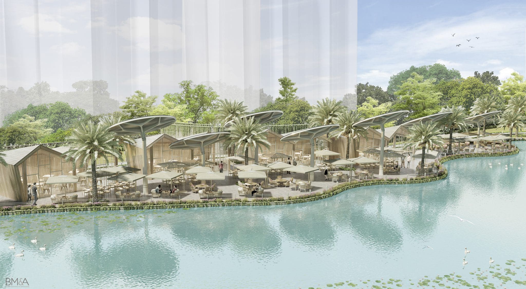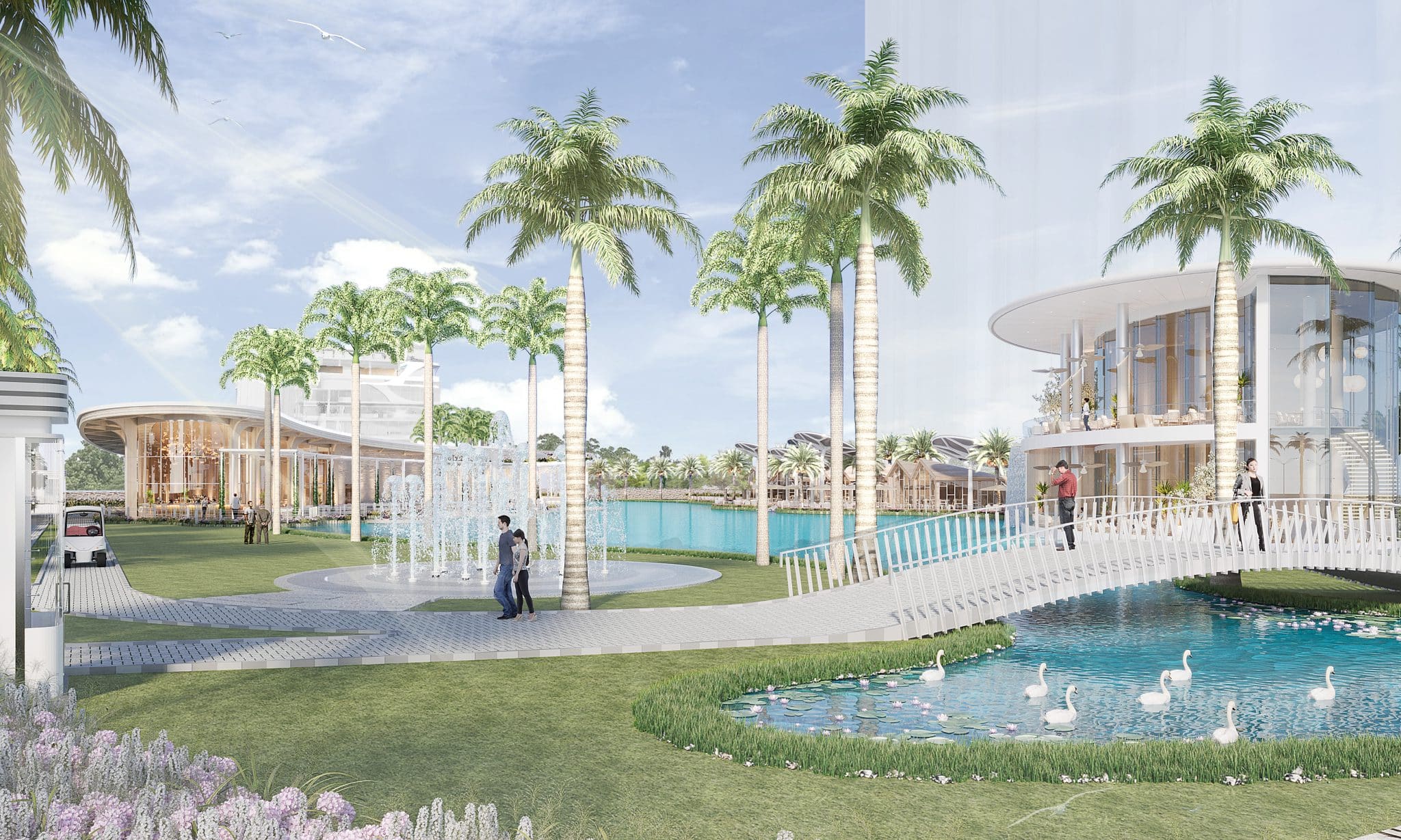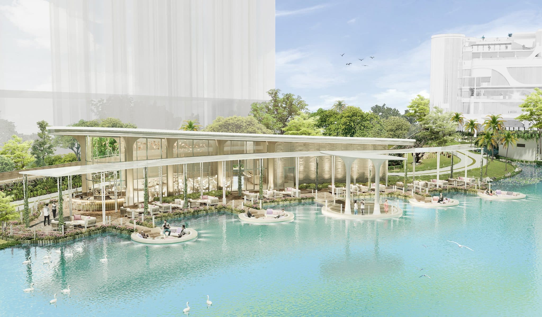 Raheja District's Central Park is a vibrant 5-acre recreational hub designed as the heart of an 80-acre mixed-use development. Anchored by a 1.5-acre central lake, the space features four uniquely designed restaurant buildings along its banks, surrounded by walkways, jogging tracks and children's parks. Conceived as a social and cultural destination, it includes an amphitheater, petting zoos, a dog park, a turtle pond, a koi fish pond, dancing fountains and swans gliding across the water. With a banqueting lawn and immersive public spaces, this dynamic environment is set to become a key attraction, fostering community engagement and urban leisure.