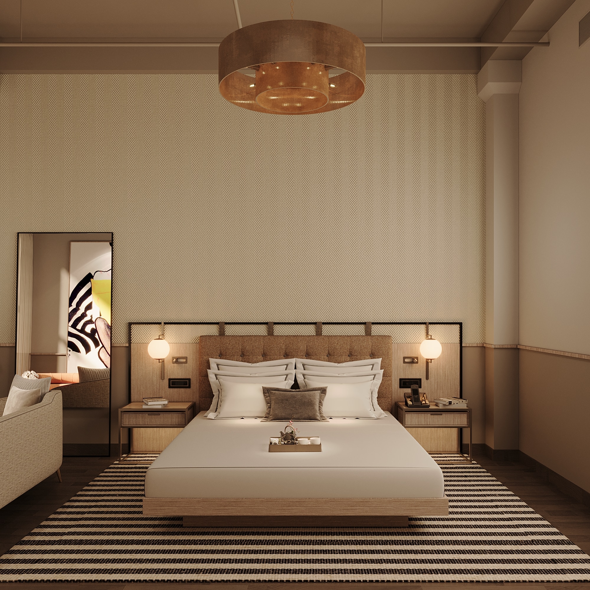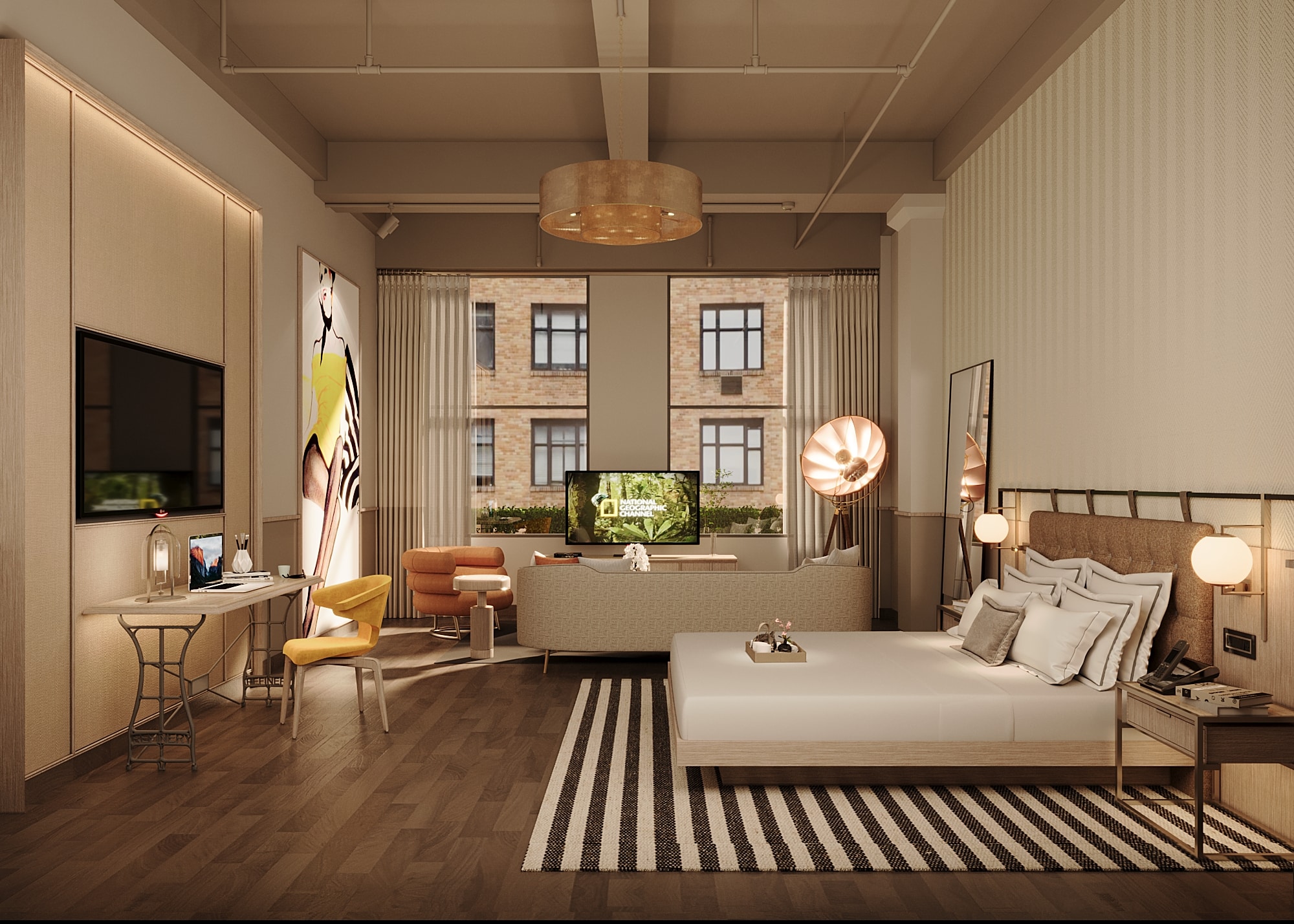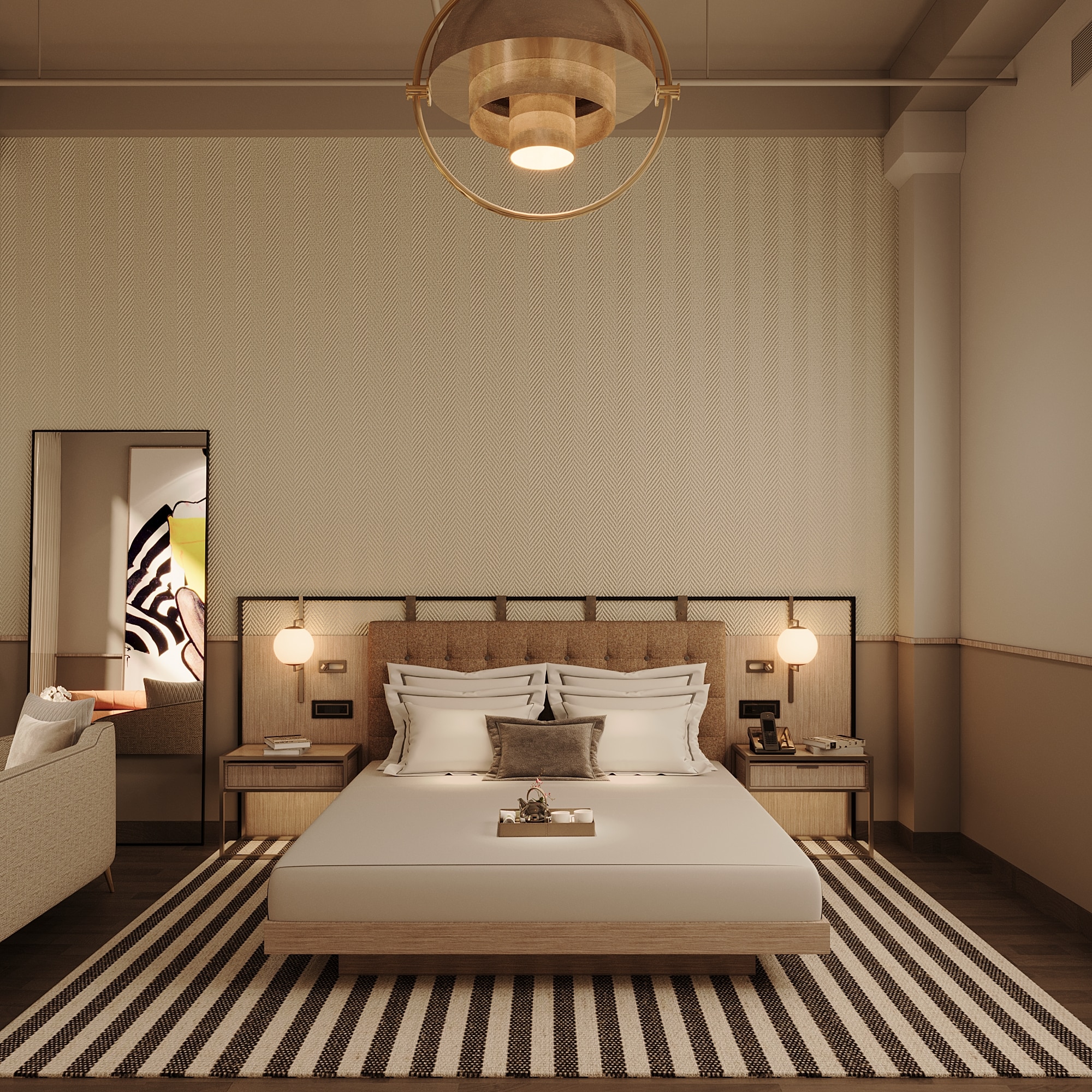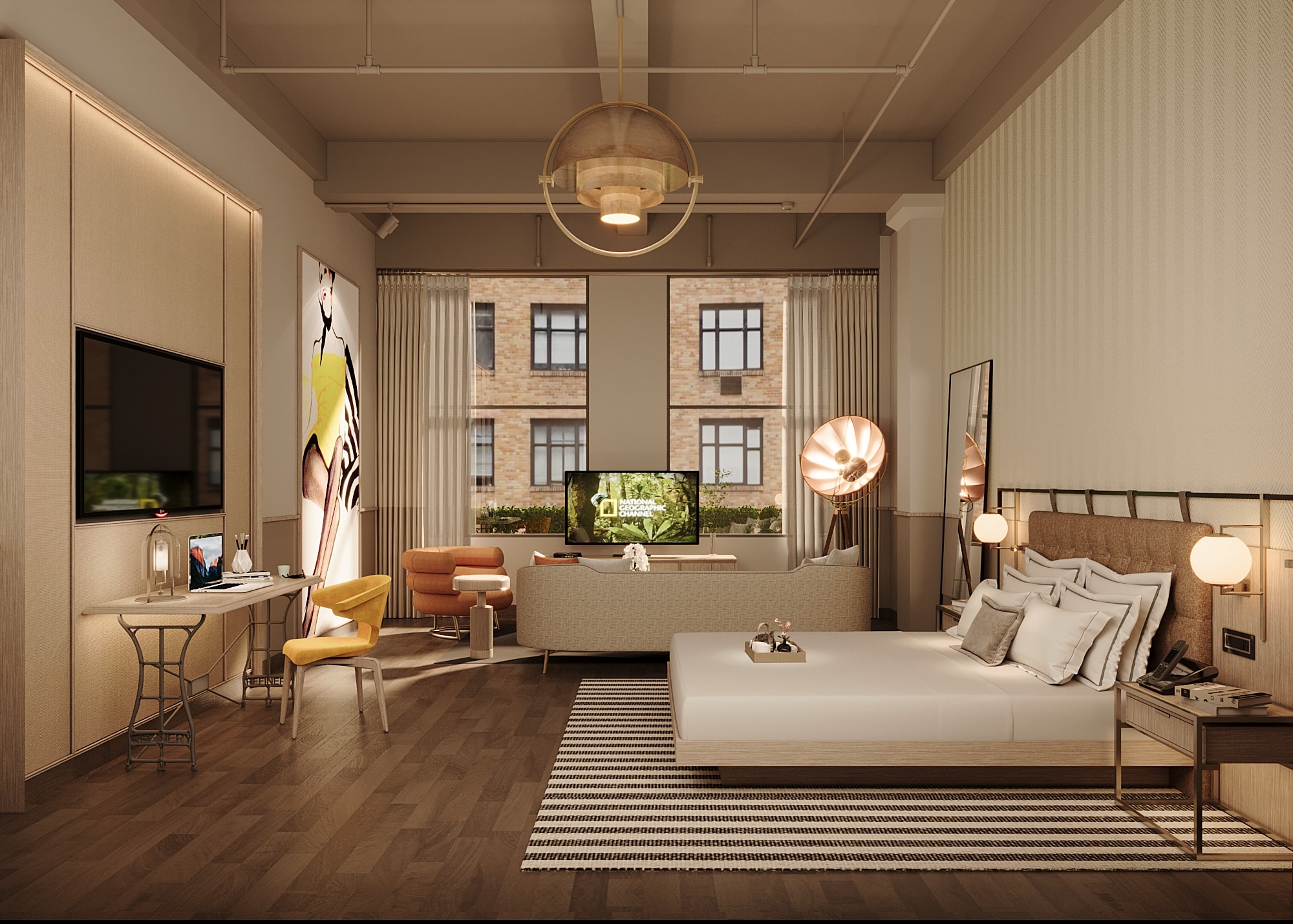 Drawing inspiration directly from the site's past, the hotel interior design embraces the theme of fashion and artisanal craftsmanship. Original elements referencing the hat-making legacy are thoughtfully preserved and integrated throughout the interiors, creating a distinctive ambiance that celebrates the storied history. The boutique guest rooms, offered in various shapes and layouts, embody New York’s dynamic character through rich textures, bespoke detailing, and modern comforts. With every corner designed to surprise, the Refinery Hotel offers an immersive experience that pays homage to its artisanal roots while catering to the sensibilities of the modern luxury traveller. This project establishes a benchmark for historic architecture adaptive reuse in Manhattan.