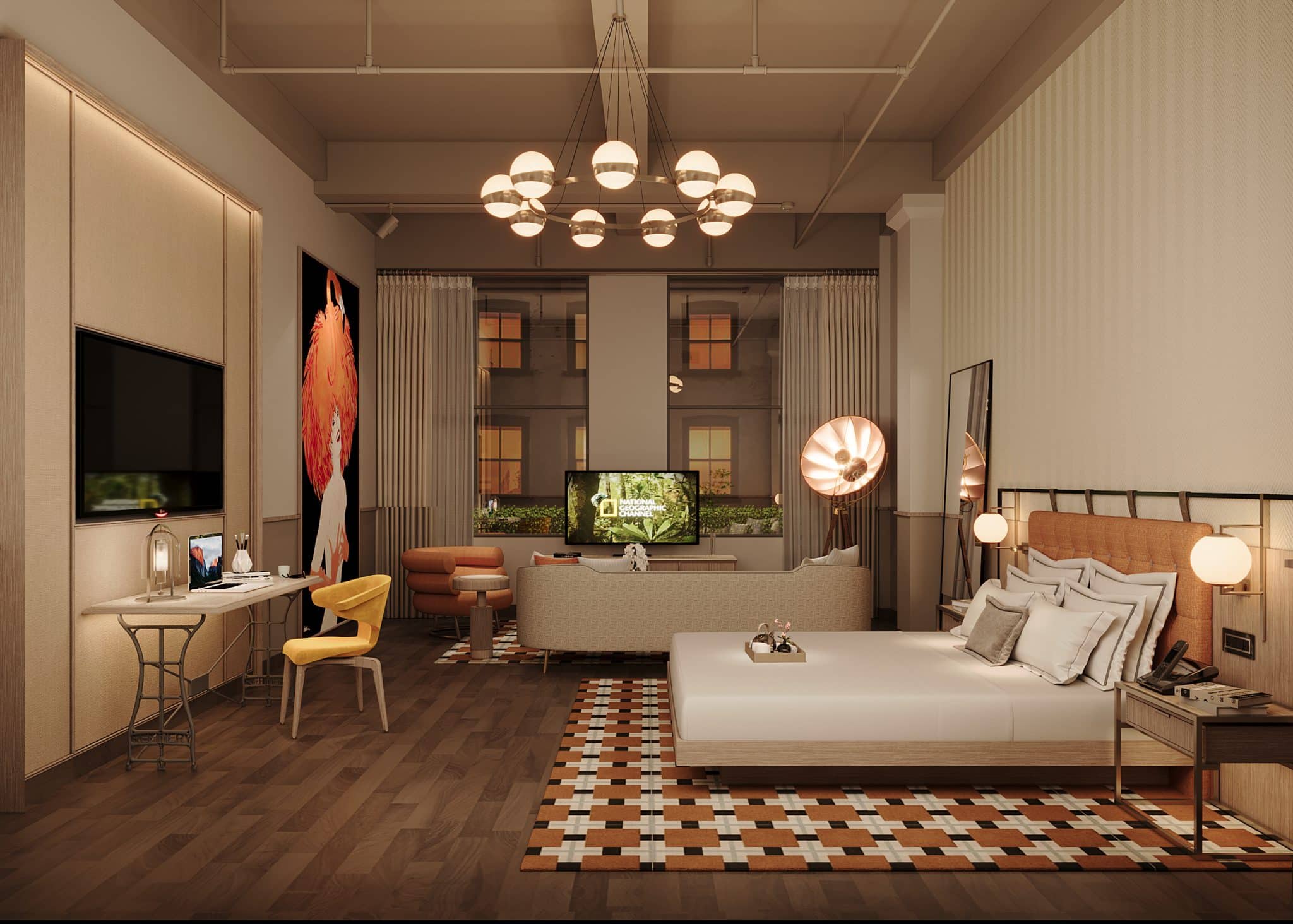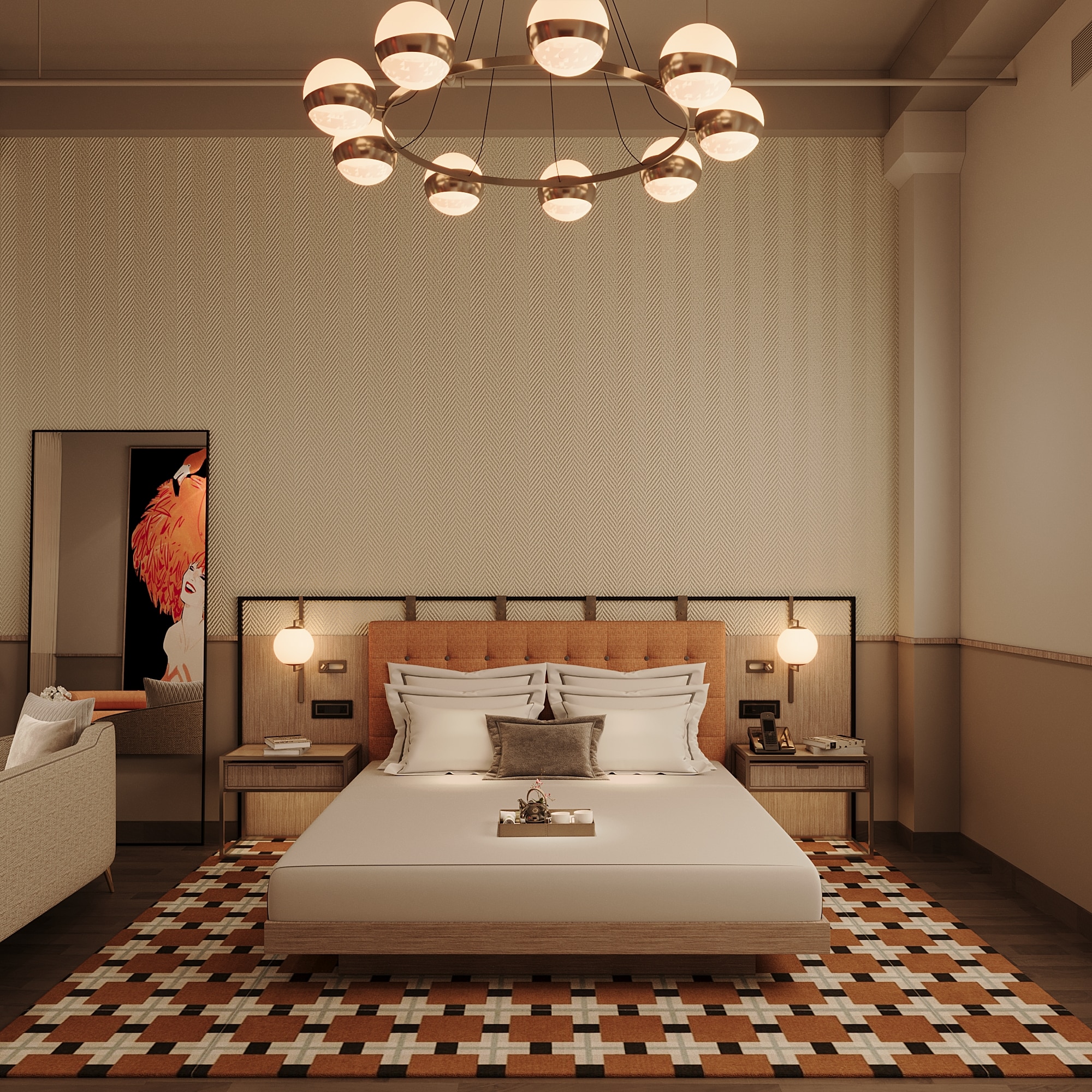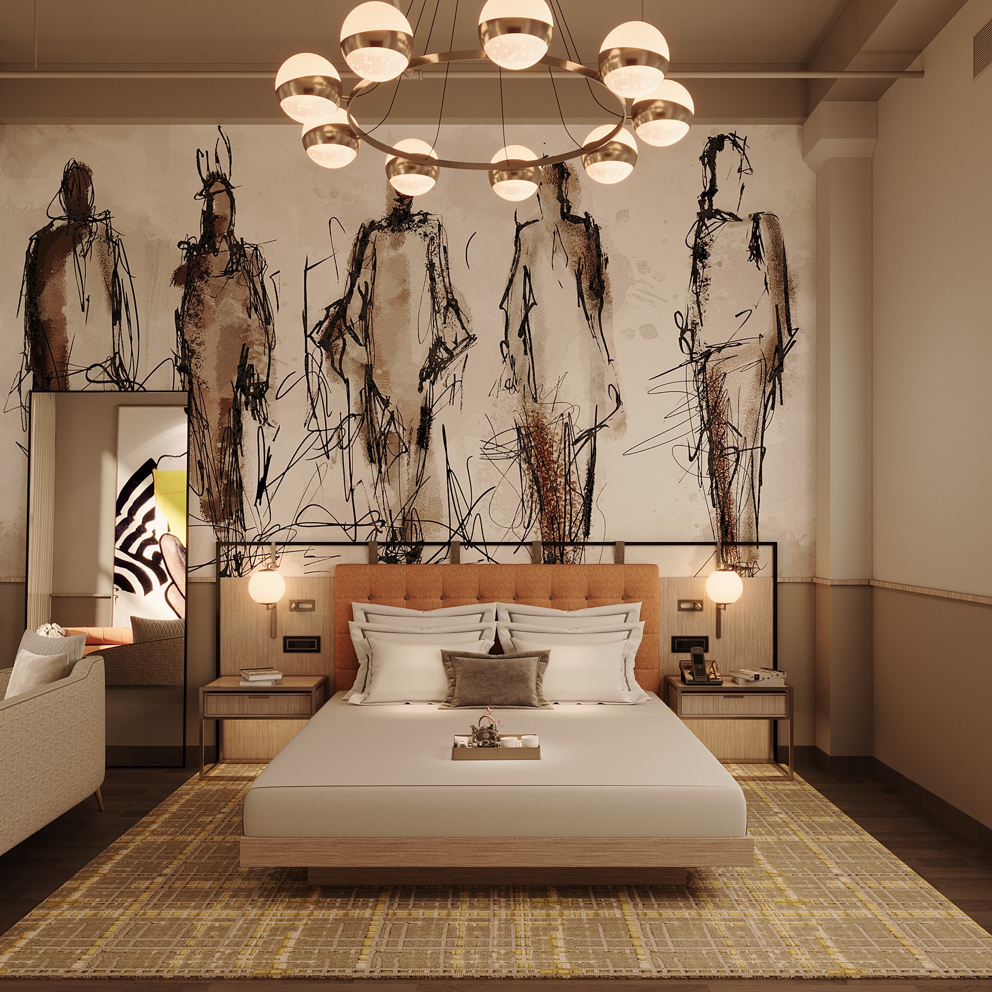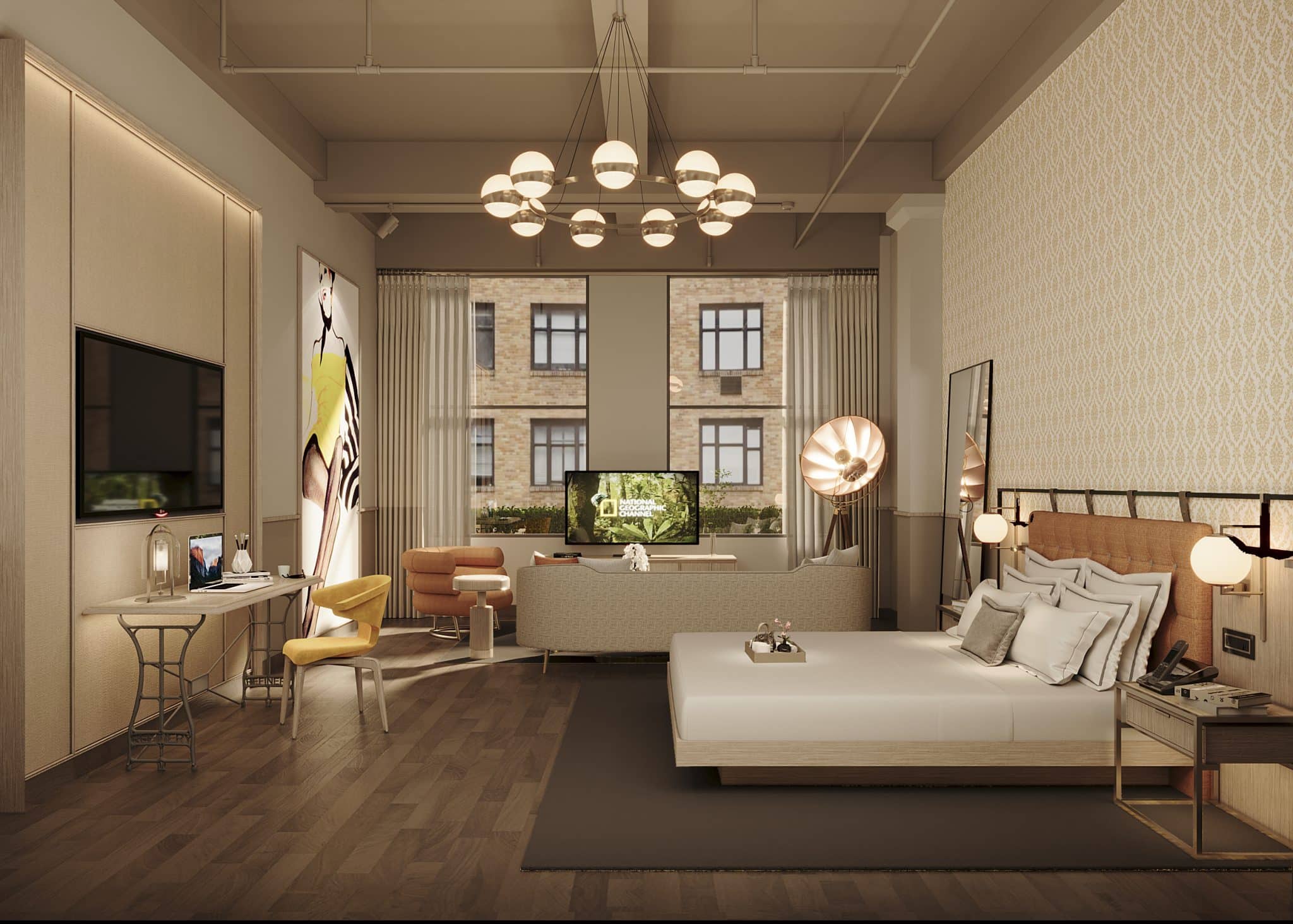 Drawing inspiration directly from the site's past, the hotel interior design embraces the theme of fashion and artisanal craftsmanship. Original elements referencing the hat-making legacy are thoughtfully preserved and integrated throughout the interiors, creating a distinctive ambiance that celebrates the storied history. The boutique guest rooms, offered in various shapes and layouts, embody New York’s dynamic character through rich textures, bespoke detailing, and modern comforts. With every corner designed to surprise, the Refinery Hotel offers an immersive experience that pays homage to its artisanal roots while catering to the sensibilities of the modern luxury traveller. This project establishes a benchmark for historic architecture adaptive reuse in Manhattan.