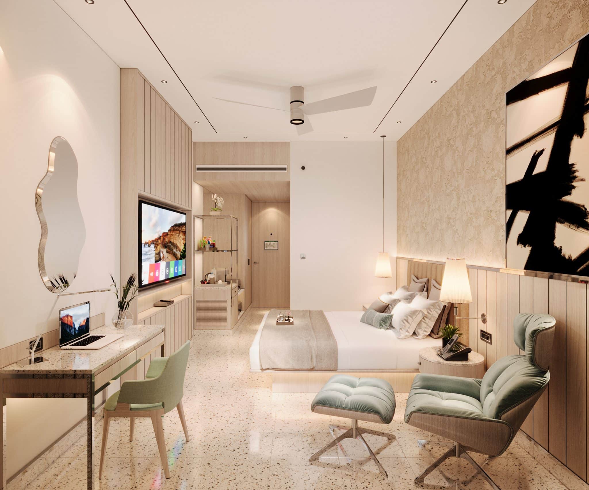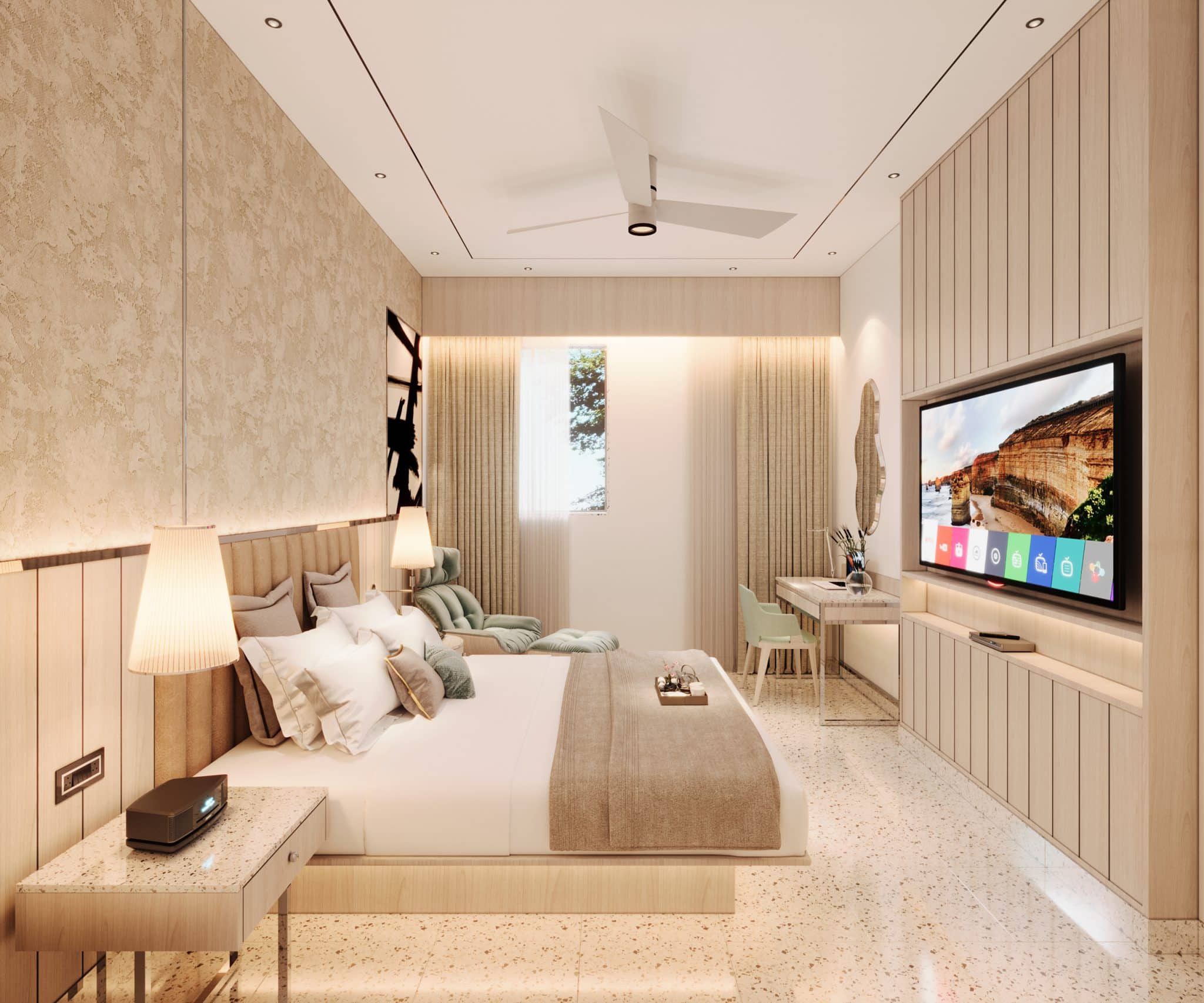 The Runwal Sanctuary Club House, designed by Bobby Mukherji Architects for Runwal Developers, is a contemporary modern recreational facility in Mulund, Mumbai, set for completion in 2025. Spanning 20,000 square feet, it features a grand entrance lobby, reception, gym, banquet hall, children’s playroom, guest rooms, movie theatre, games room, pre-function area, yoga space, pool deck, squash court, and badminton court. Thoughtfully designed to enhance community living, this clubhouse offers luxury, wellness, and world-class amenities, creating an engaging and dynamic environment for residents.