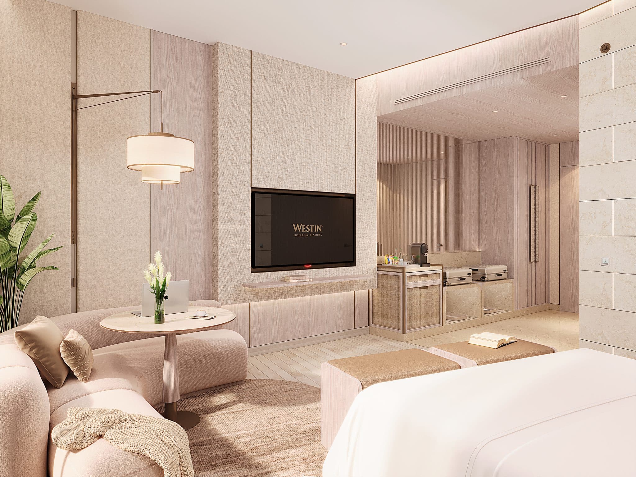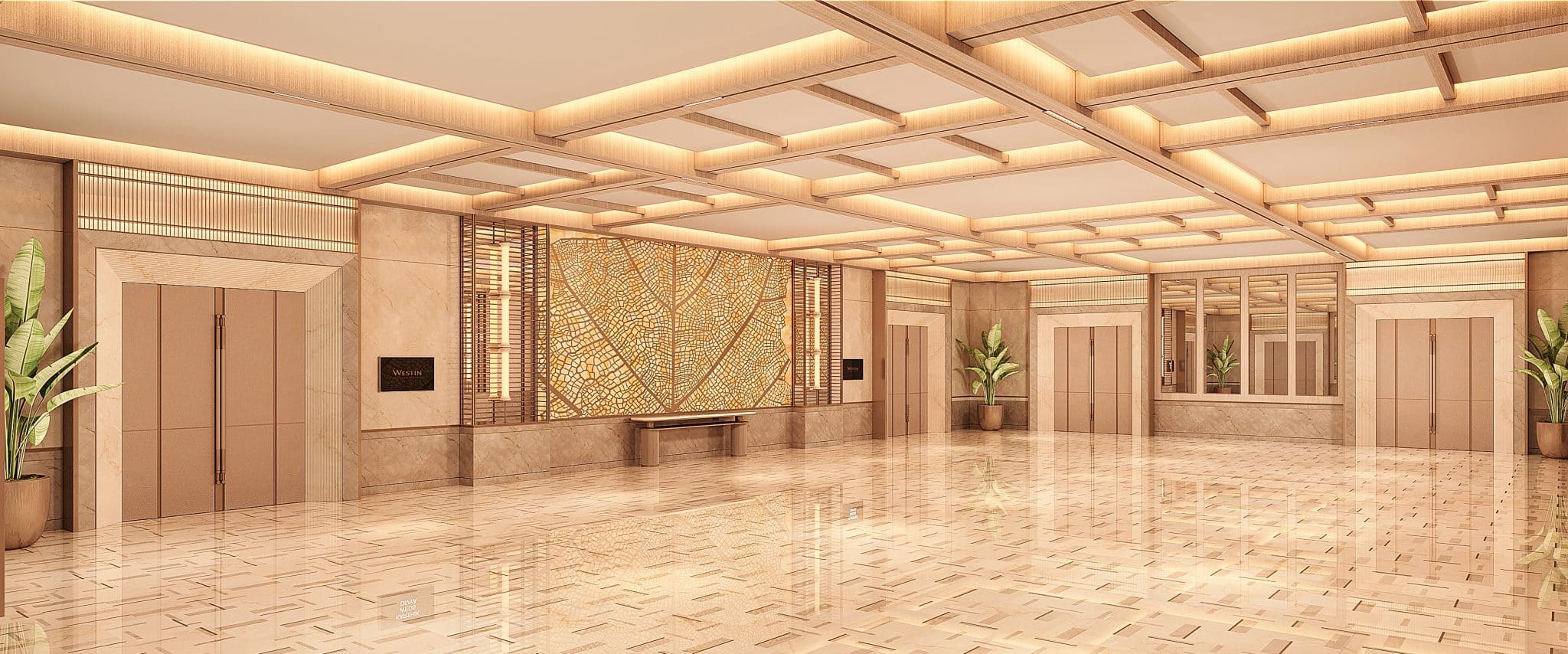 Set within a sprawling 3 million sq. ft. development, the Westin Branded Residences in Gurgaon is a statement in luxury living, with interiors by Bobby Mukherrji Architects. The project includes meticulously designed private apartments, all common areas, and 12 grand building lobbies, each crafted to exude sophistication and comfort. At the heart of the development lies a 200,000 sq. ft. resort-style clubhouse, envisioned as a lifestyle destination offering an expansive range of amenities; lavish ballrooms, elegant pre-function areas, an all-day dining venue, a stylish bar, a Pan-Asian specialty restaurant, indoor and outdoor pools, snooker and billiards rooms, yoga and fitness studios, a full-service spa, and salon. Designed in a refined Westin aesthetic, the spaces blend timeless elegance with contemporary luxury, creating a vibrant, amenity-rich community.