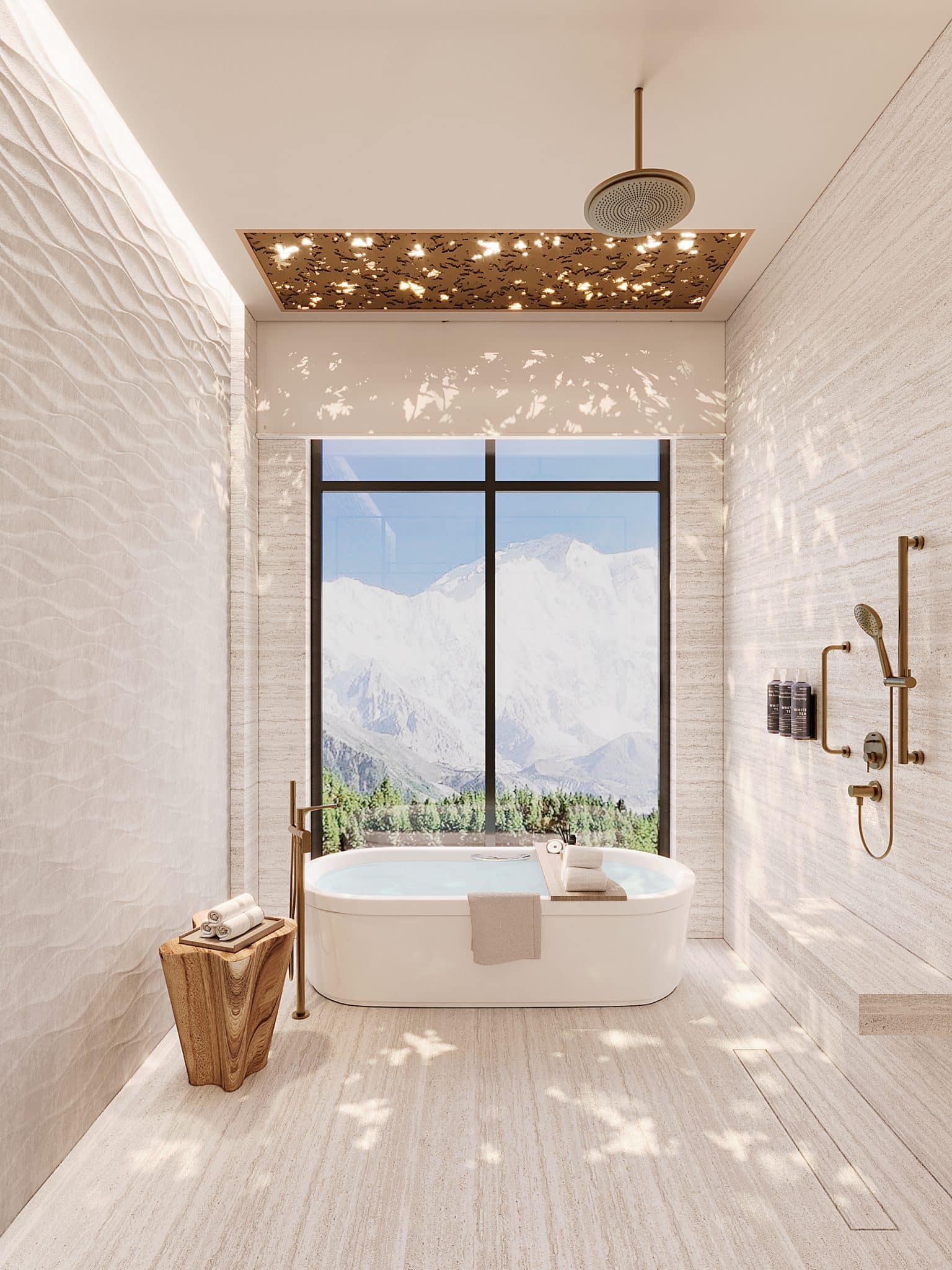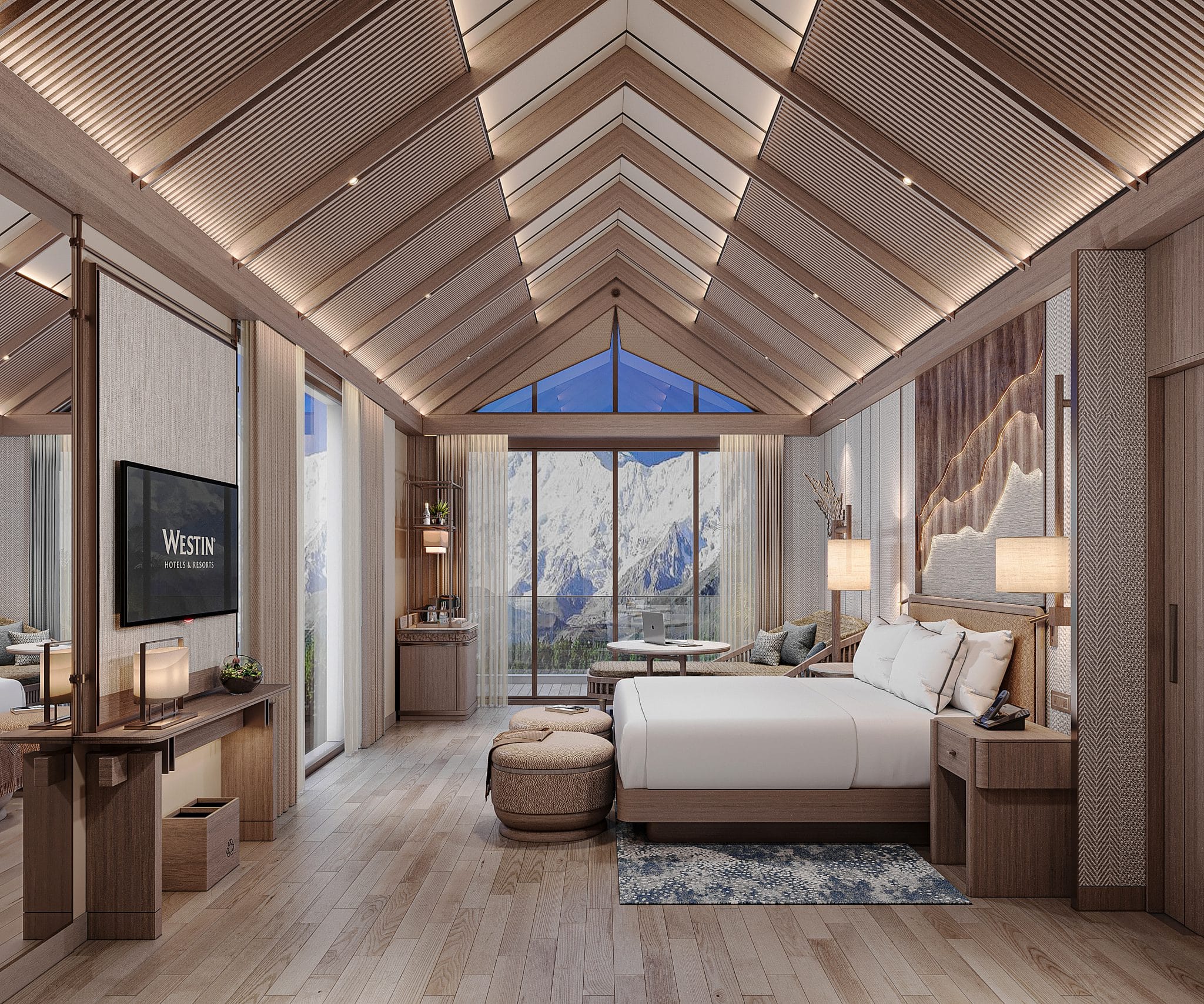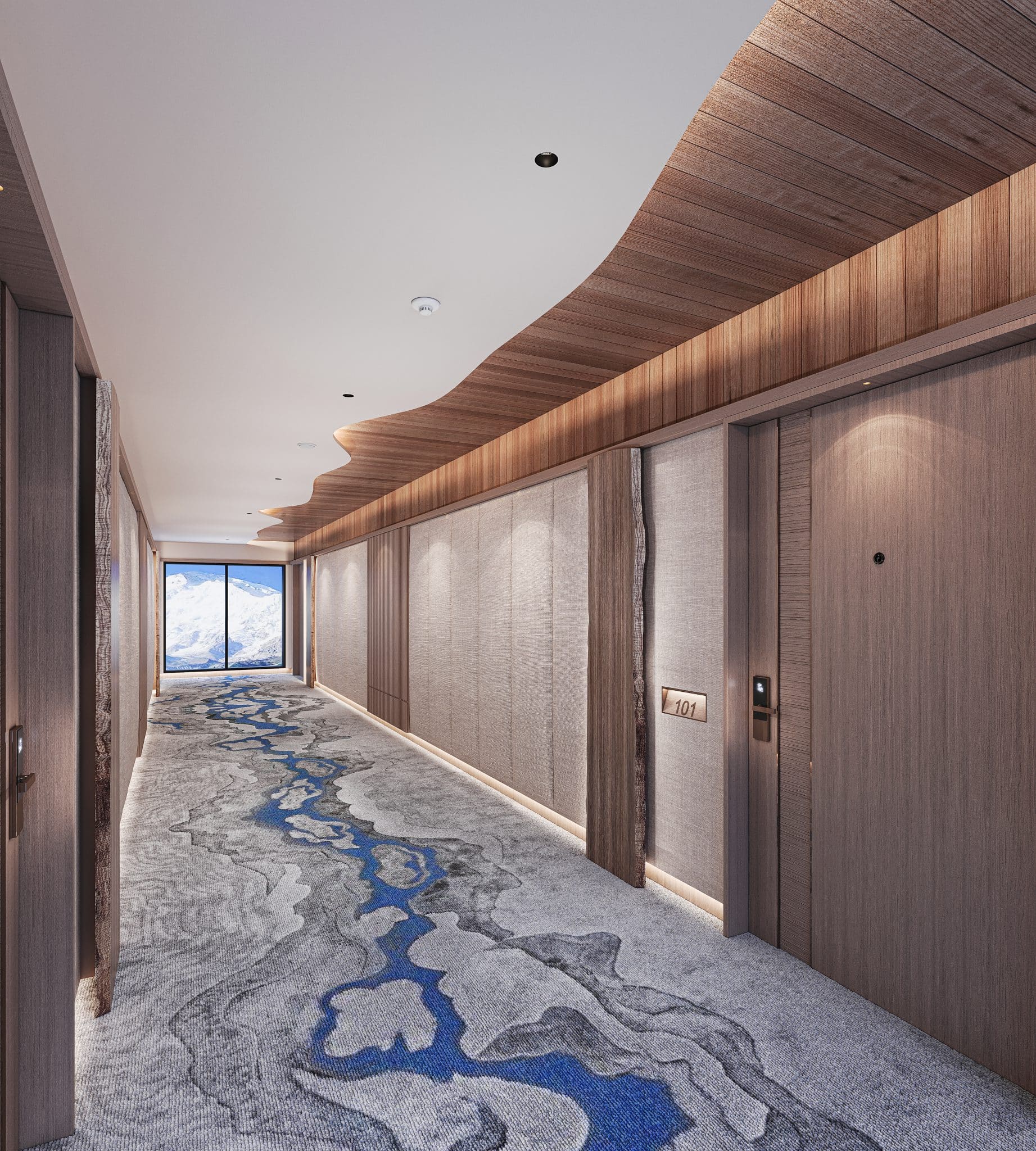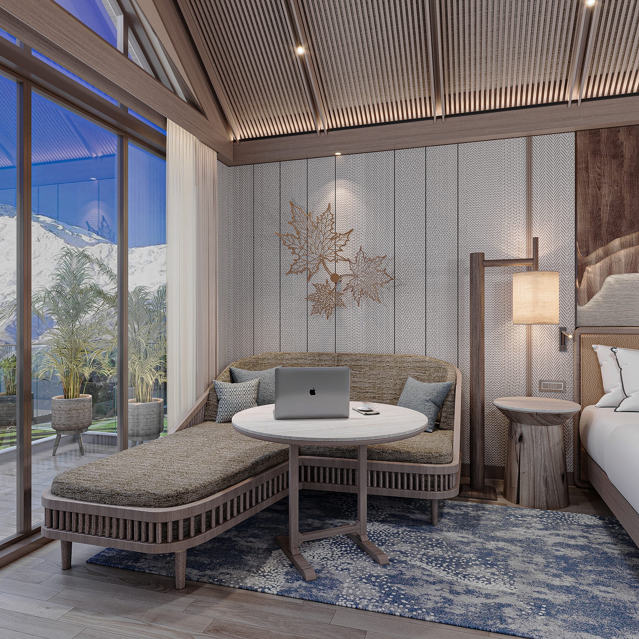 Nestled in the pristine hills of Pahalgam, Kashmir, the Westin Hotel is conceived as a serene wellness retreat, blending contemporary sophistication with the region’s rich cultural and natural heritage. Guided by the principles of biophilic design, the project draws deep inspiration from the Himalayan landscape, Kashmiri traditions, and indigenous materials. The interiors evoke the essence of Pahalgam through earthy palettes, walnut woodwork, intricate carvings, and motifs inspired by the Chinar leaf and Lidder River.