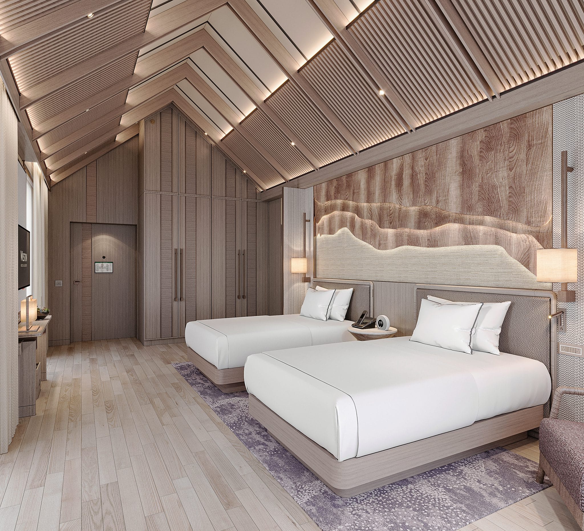 Set beside the iconic Pahalgam Golf Course, the site offers majestic views of pine forests and snow-clad peaks. The architecture celebrates nature, incorporating indoor-outdoor transitions, natural textures, and a palette influenced by Kashmiri crafts and local artistry. With 100 thoughtfully designed keys, including Standard King and Double Double rooms, the hotel features dining spaces, a banquet hall, outdoor cafés, and tranquil corridors that reinforce the design’s core intent, to restore mind, body, and soul.