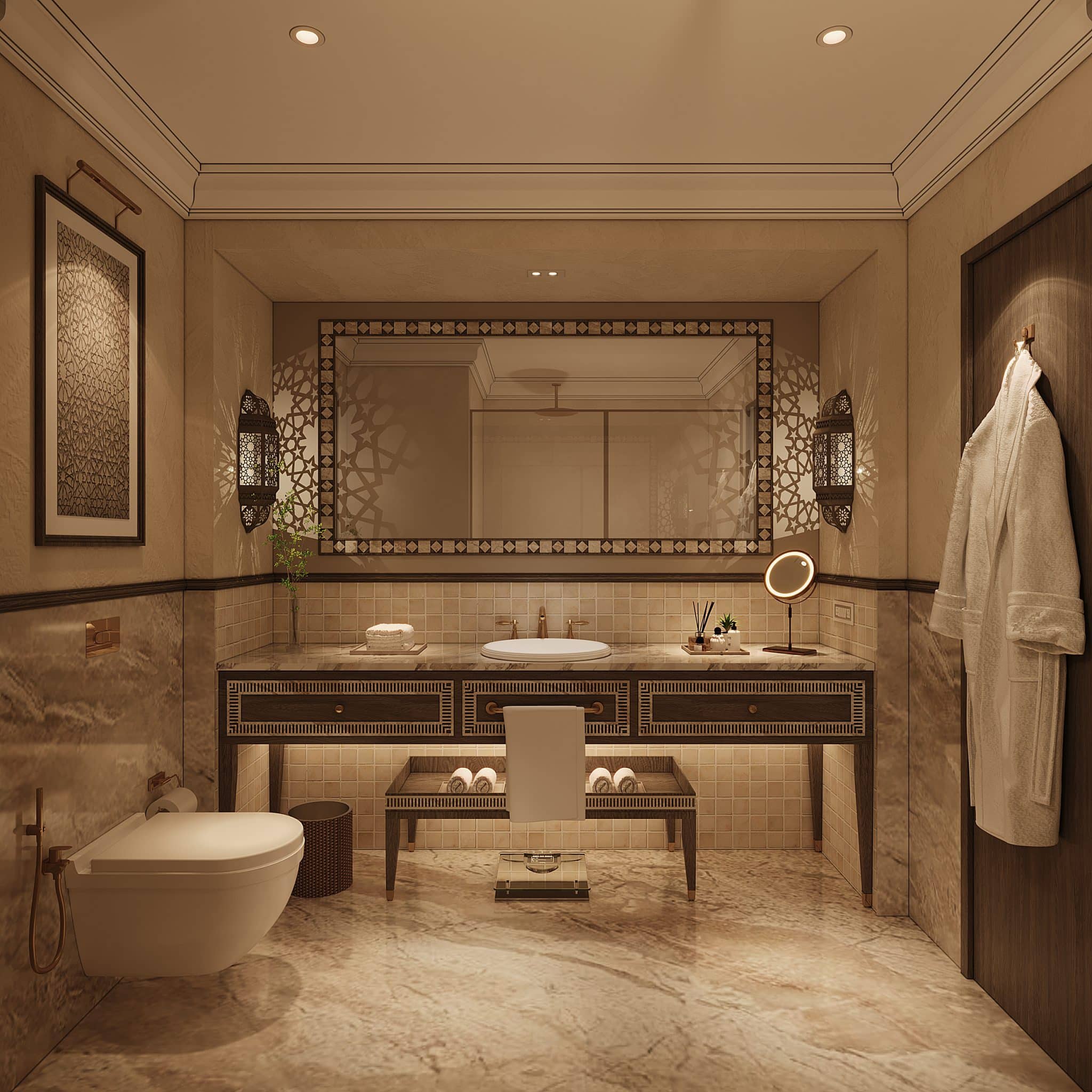 The design presents two distinct room aesthetics, customized for modern comfort while intensely honoring local inspiration. Nature finalizes the resort's story: carefully chosen palms, tulips, frangipanis, and vibrant ground covers shape immersive gardens and pathways. This successful blend establishes the project as a pinnacle of luxury hospitality in the region.